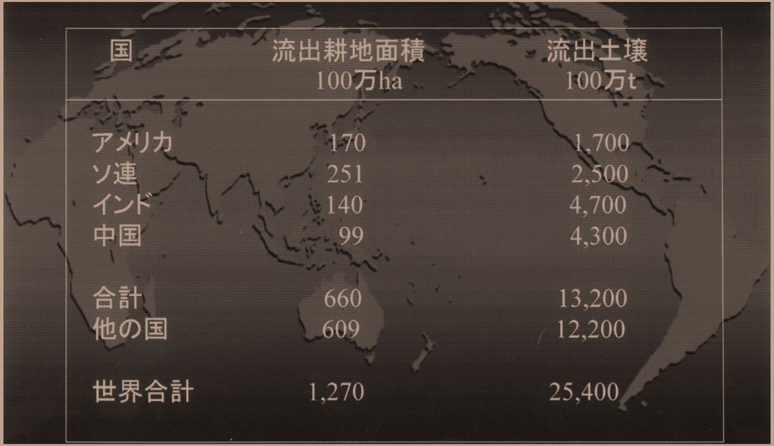 中国もインドも世界の耕地における土壌流出の推計を見てみると、すごいことになっています。インドや中国は特に深刻ですね。今の段階で地球表面にある土を守らなければすべての命が失われる恐れだってあります。