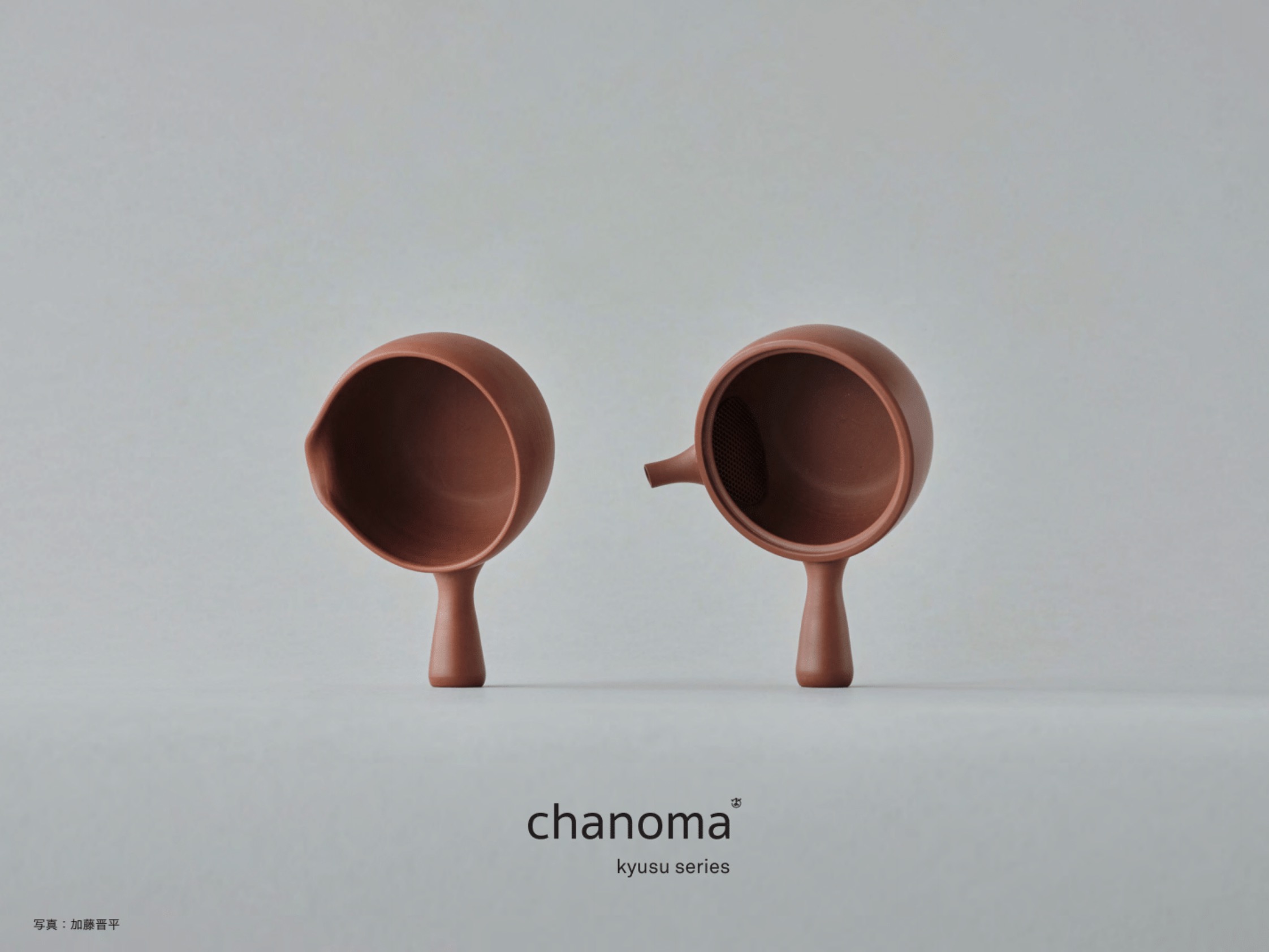 常滑での僕の仕事でいうと、2021年に急須専門店問屋の丸よ小泉商店さんと作り手である陶仙陶園さんと共同で、丸よ小泉商店オリジナルの急須の新ブランド「chanoma」シリーズの制作に携わりました。土づくりからはじまり、ロクロで成型されたパーツを組み立てて釉薬をかけずに焼き上げています。セラメッシと呼ばれる細かい穴の茶こしの効果で最後の一滴までお茶を注ぎきることができ、簡単に洗い流せるデザインになっています。