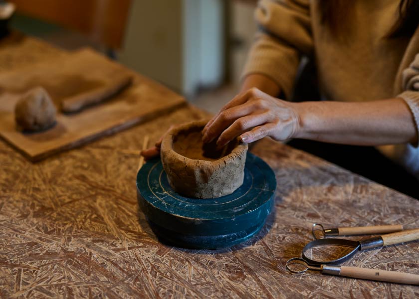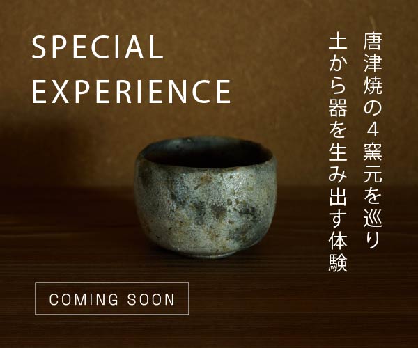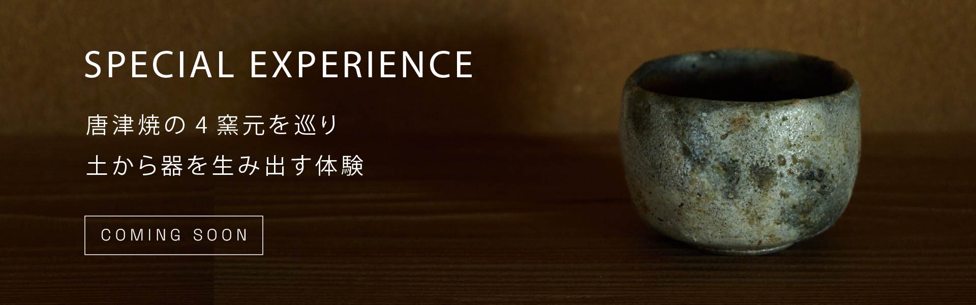 土から粘土を作り、器のカタチに成形し、窯の炎で焼き上げる。唐津焼の4つの窯元と共に、 土から器が生まれるプロセスを自分の手で行います。万物の元素から暮らしの道具を生み出す貴重な時間を体験ください。