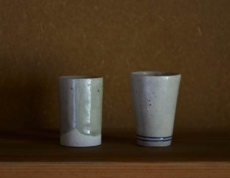 まずは、予め素焼きされたカップに絵付けをしていきます。